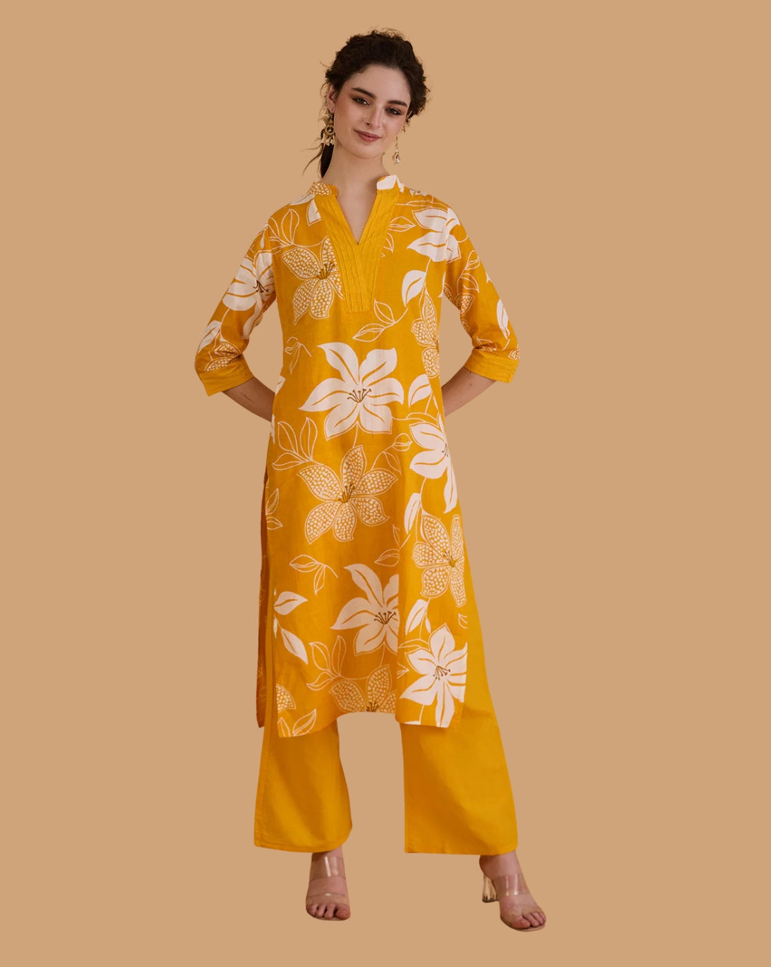 Elevate your ethnic wardrobe with the timeless charm of the Roopaasi Marigold Muse Printed Salwar Kurta Set, crafted for women who appreciate refined elegance and everyday comfort.
