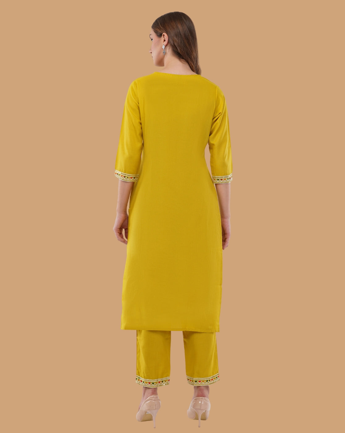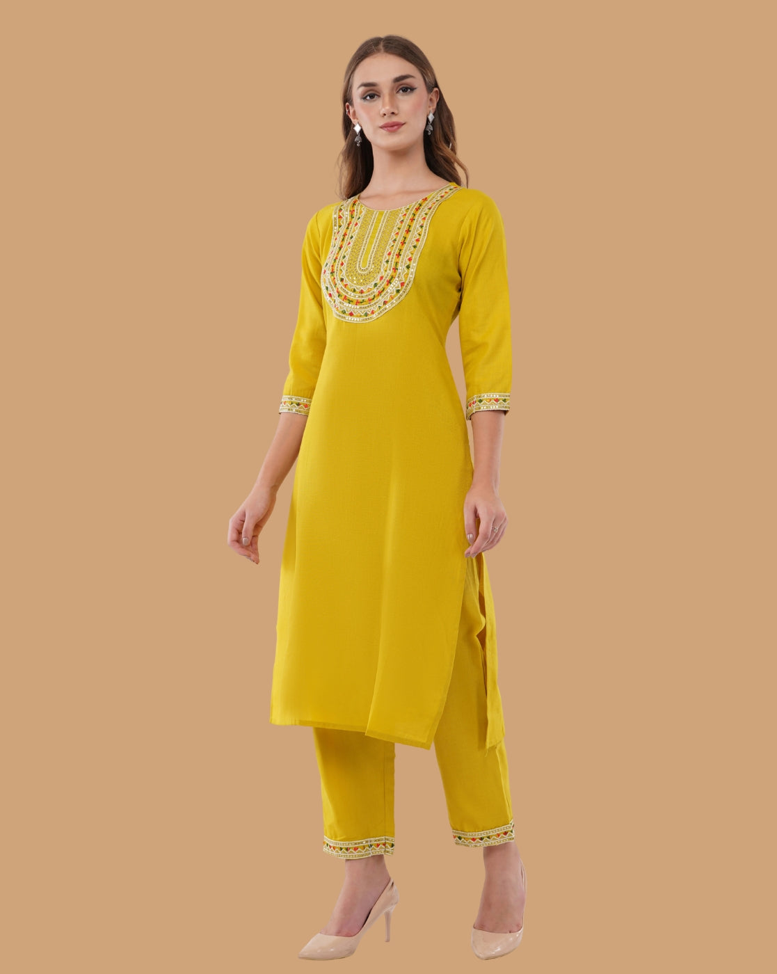 Dhartii by Roopaasi Mustard Cotton Blend Suit Set- DHSSLYFW2511