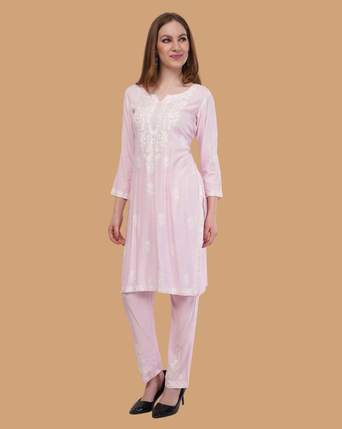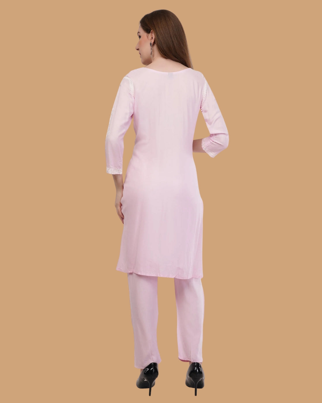Featuring a beautifully light pink kurta in a flattering straight silhouette, paired with matching solid salwar pants, this ensemble is perfect for everyday wear, festive gatherings, office ethnic days, and casual celebrations. The soft fabric ensures all-day comfort, while the rich coral pink hue adds freshness and grace to your look.
